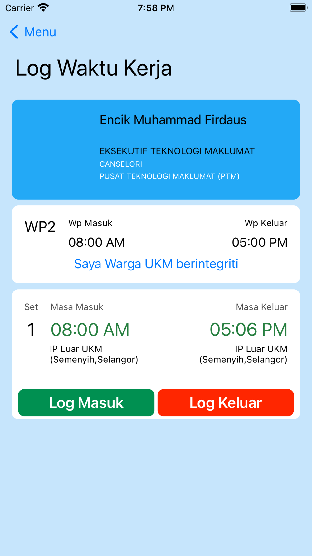 FTSM UKM Fakulti Teknologi dan Sains Maklumat Universiti Kebangsaan Malaysia. - 1245 tgh 200 ptg - 445 ptg Jumaat 800 pg. Urusetia Jabatan Bendahari.